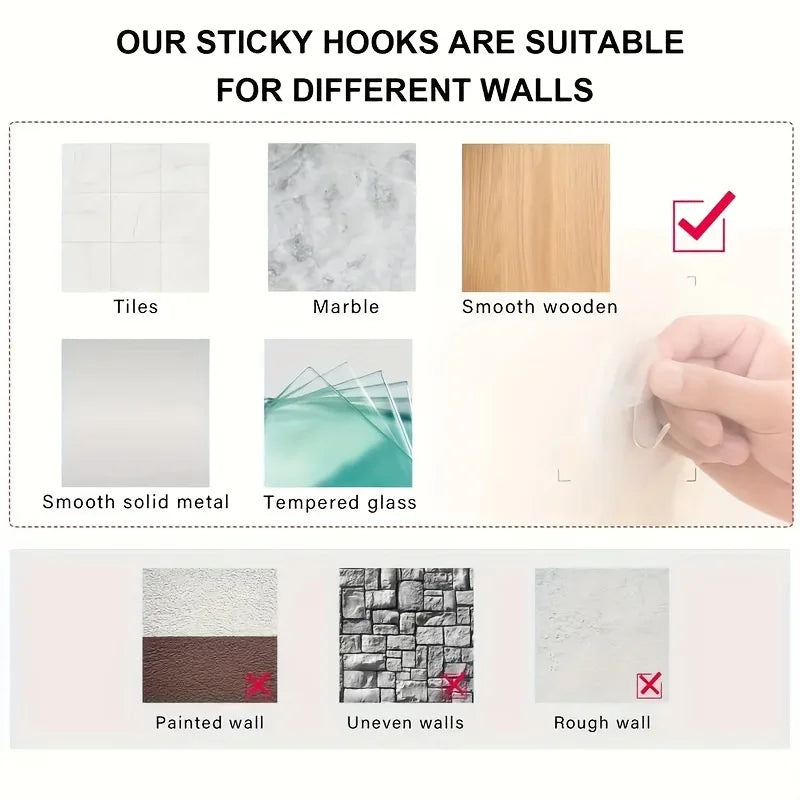 Vem com 6 peças de tubos de 26cm e 4 ganchos adesivos pegajosos, fácil de instalar